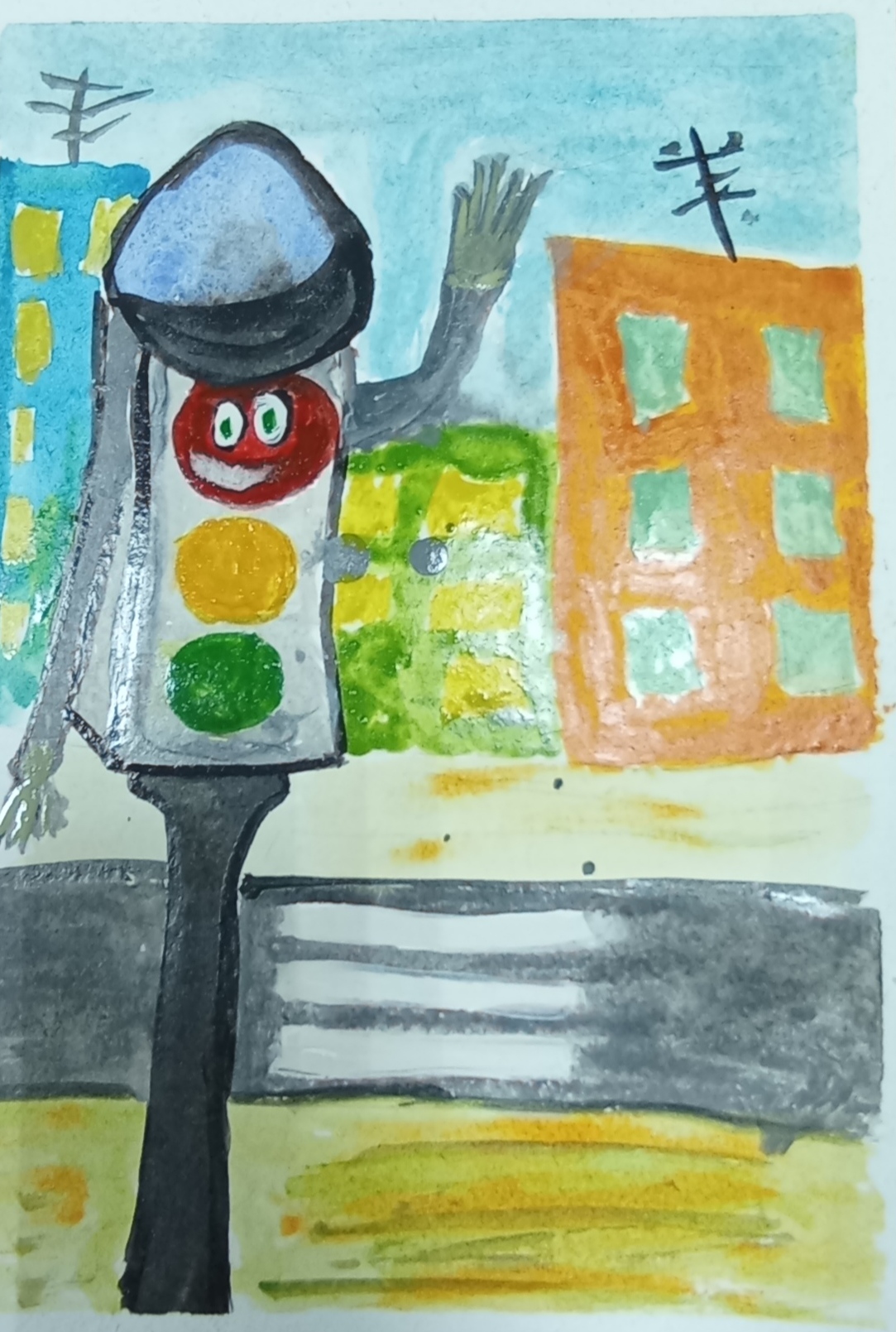 II место в номинации "Рисунок", работа "Дружелюбный светофор"